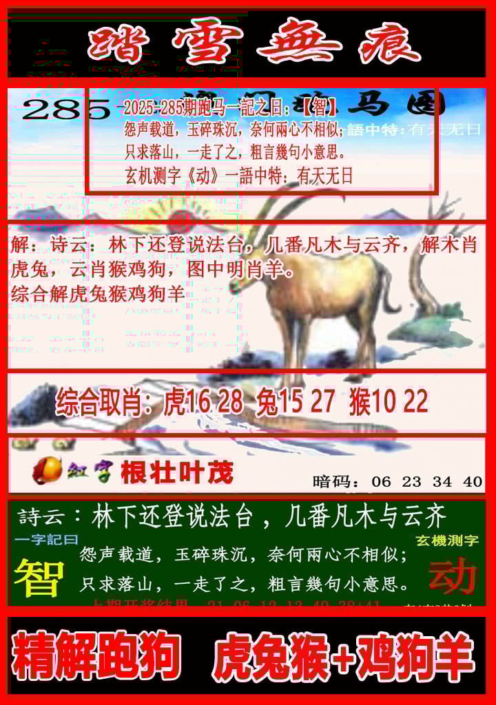 综合取肖:虎羊狗蛇猴马