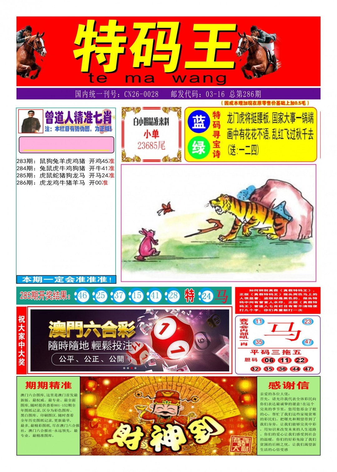 286期 平特一肖 :【马马马】开 ?? 准